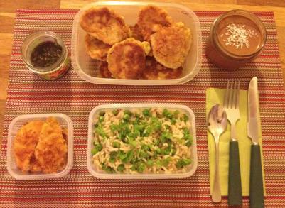 Ja ich weis, es ist schon Freitag, aber leider gab es gestern ein kleines computertechnisches Problem, deshalb ausnahmsweise mal freitags. Dafür gibt es heute was besonders Leckeres. Ich hatte bei dieser Lunchidee nichts besonderes im Hinterkopf. Ich hab einfach das zusammengestellt, auf das ich Lust hatte und das ist dabei rausgekommen: ![]() Vorspeise: vegetarische Maisplätzchen mit süß-sauer Dip aus der Tex-Mex-Ecke Hauptgang: Hähnchennuggets (Slow Food!) auf einer Art Risibisi Dessert: Mousse au Chocolat mit Kokosflocken-Toping Die Mousse au Chocolat ist natürlich selbstgemacht und nicht aus der Packung. Und es ist gar nicht schwer! Für ca. 20 Maisplätzchen braucht ihr (10 Stk. waren in der Box): 1 Dose Mais (davon wird die Hälfte püriert) 150g Mehl 2 TL Backpulver 1/2 TL Koriander gemahlen 1/4 TL Kreuzkümmel gemahlen 80 ml Milch 2 Eier 2 EL Schnittlauch (frisch oder getrocknet) Öl zum Ausbacken Alle trockenen Zutaten in eine Schüssel geben und vermischen. Erst danach die feuchten Zutaten dazugeben und gut vermengen, bis das Mehl keine Klumpen mehr bildet. In einer beschichteten Pfanne neutrales Pflanzenöl erhitzen und kleine Plätzchen von etwa einem Esslöffel Teig ausbacken bis sie goldgelb sind. Auf Küchenpapier abtropfen. Warm und kalt zu genießen. Für den Dip: 4 EL Salsa 3 EL brauner Zucker 4 EL dunkler Balsamico-Essig 1 EL Schnittlauch (frisch oder getrocknet) Alles zusammen in einem kleinen Topf kurz aufkochen, bis der Zucker vollständig aufgelöst ist. War auf jeder Party bis jetzt DER Renner. Kostet wirklich wenig, einzig der Zeitaufwand beim Ausbacken ist nicht unerheblich. Sehr variabel, kann für Veganer, wie für Gluten-Allergiker abgewandelt werden. Für 20 Plätzchen und Dip könnt ihr ca. 1,50€ kalkulieren. Mousse au Chocolat für 2 Portionen 1 Tafel Zartbitter-Schokolade (85%) 20g Butter 25g Zucker 1 großes Ei 1/2 Becher Sahne Die Butter zusammen mit der Schokolade über heißem Wasserdampf schmelzen. WICHTIG!: Die Schüssel, in der ihr schmelzt, darf nicht IM Wasser hängen, sondern darf nur vom Wasserdampf erwärmt werden! Es darf kein Wasser an die Schokolade kommen! Das Ei trennen und das Eigelb mit dem Zucker schaumig schlagen. Das Eiweiß und die Sahne jeweils steif schlagen. Die flüssige Schokolade vorsichtig mit dem "Zuckerei" verrühren. Dann vorsichtig das Eiweiß und die Sahne unterheben. Die Mousse in Gläser füllen und kaltstellen. Zum Mitnehmen nehmt ihr dafür am Besten ein Glas mit Schraubverschluss. Super lecker und sehr schokoladig. Für eine Portion Mousse au Chocolat liegen wir bei 0,75€. Mein gesamtes Essen an diesem Tag hat somit ungefähr 3€ gekostet. Dabei ist das Hähnchen mit ca. 1€ am Teuersten. Genießt das Wochenende! Bis Montag Eure Lena link (0 Kommentare) kommentieren ... Ältere Stories