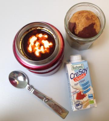 Heute bewegen wir uns Mal in die fleischlose Richtung. Für unsere Vegan- und Vegetarier-Freunde (aber natürlich auch gern für alle Nicht-Vegetarier). ![]() Heute: vegane Gulaschsuppe mit etwas Sojasahne und dazu veganer Marmorkuchen Es schmeckt wirklich gut und ich als "Fleischesser" kann euch sagen, dass man kaum einen Unterschied zwischen "echter" und "veganer" Suppe schmeckt. Für 1 Portion Suppe braucht ihr 25g trockene Sojaschnetzel etwas Sojasoße Gemüsebrühe zum Quellen 300ml Gemüsebrühe Tomatenmark 30g Zwiebel gewürfelt etwas Knoblauch nach Belieben 1 mittelgroße Kartoffel gewürfelt 1/2 Paprika gewürfelt 25g Champignons 1 Schluck Rotwein 1/2 Dose gehackte Tomaten etwas Rapsöl Paprikapulver scharf Paprikapulver edelsüß Pfeffer Salz Kümmel gemahlen Majoran gerebelt Die Sojaschnetzel in einer Schüssel mit etwas Sojasoße beträufeln und in Gemüsebrühe quellen lassen, bis sie sich vollständig vollgesogen haben. Dann abtropfen lassen. Nun könnt ihr die Schnetzel wie "normalen" Gulasch verwenden. Zwiebeln in etwas Öl leicht andünsten. Dann die Schnetzel dazugeben, anrösten und nach Belieben Tomatenmark und Knoblauch dazugeben (Vorsicht!: Tomatenmark und Knoblauch werden bitter, wenn sie zu stark geröstet werden.). Kartoffeln kurz mit rösten. Das Geröstete mit dem Rotwein ablöschen und reduzieren lassen. Dann mit Gemüsebrühe aufgießen. Bei schwacher Hitze köcheln lassen. Anschließend die Dosentomaten und die Paprikawürfel dazugeben. Die Pilze separat anbraten und mit Salz, Pfeffer und Majoran würzen und in die Suppe geben. Nochmals köcheln lassen und mit den Gewürzen abschmecken. Schmeckt toll mit einem Schuss Sojasahne. Bei diesem Vegan-Gericht liegen wir bei ca. 2,80€. Das Rezept für den Kuchen gibt's ein ander Mal. Bis dahin Lena